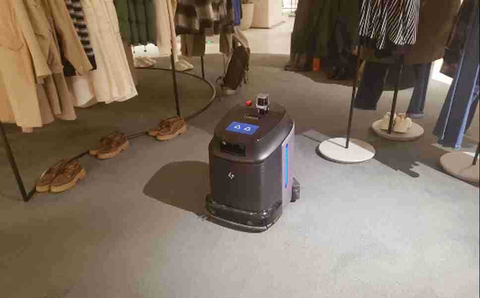 门店采用租用清洁机器人业务模式,,保洁员配合机器人,,,保障清洁质量,,,,落实人+机结合清洁理念。。。由1台清洁机器人每日定时多次进行洗地、、、尘推、、吸尘及清扫作业。。。保洁人员配合进行垂直清洁及边角清洁。。。机器人释放180H/月的工时,,相当于1-1.5个岗位。。。按时薪25元/小时算,,,释放工时价值:¥4500/月。。